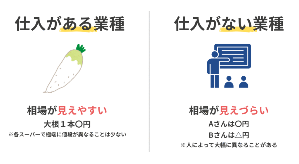 「仕入」という目に見えるモノがある場合、相場が見えることは多いです。